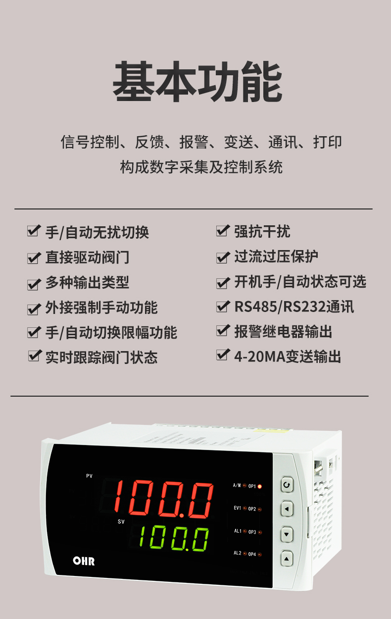 OHR-E500系列手動(dòng)操作器適合作為DCS系統(tǒng)回路調(diào)節(jié)控制輸出和智能調(diào)節(jié)器控制輸出的備用操作器使用,可同時(shí)輸入和顯示給定信號(hào)和反饋信號(hào),可與各類傳感器、變送器配合使用。