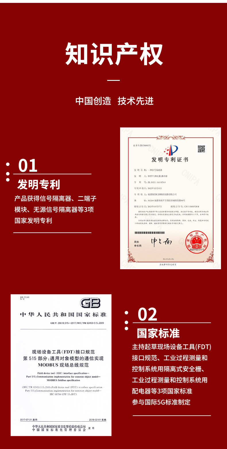虹潤公司是專業(yè)生產(chǎn)隔離器的國家專精特新“小巨人”企業(yè)。生產(chǎn)的信號隔離器,具有采用磁隔離技術(shù),直流電壓/電流輸入,響應(yīng)時間快,抗干擾能力強,性價比高等特點。該產(chǎn)品不僅通過德國萊茵 CE 認證與 SIL 功能安全認證,還獲得信號隔離器、二端子模塊、無源信號隔離器等3項國家發(fā)明專利,主持起草現(xiàn)場設(shè)備工具(FDT)接口規(guī)范、工業(yè)過程測量和控制系統(tǒng)用隔離式安全柵、工業(yè)過程測量和控制系統(tǒng)用配電器等3項國家標準,參與國際5G標準制定。產(chǎn)品廣泛應(yīng)用于石油、電力、化工,冶金、制藥、污水處理、窯爐控制等各種需要電隔離的工業(yè)現(xiàn)場。