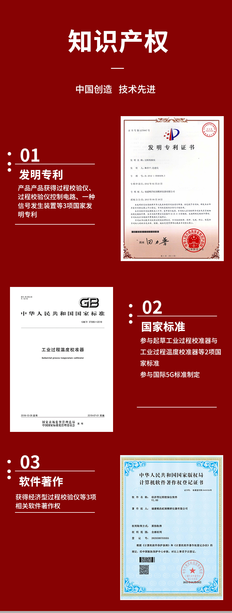 虹潤公司是專業生產過程校驗儀的國家專精特新“小巨人”企業。生產的經濟型過程校驗儀,具有小巧式,大彩屏,中英文切換,多種測量與輸出類型,精度達0.05%FS,手機充電電池等特點。產品獲得過程校驗儀、過程校驗儀控制電路、一種信號發生裝置等3項國家發明專利,起草工業過程校準器與工業過程溫度校準器等2項國家標準,參與國際5G標準制定,取得經濟型過程校驗儀等3項相關軟件著作權。產品廣泛應用于電力、化工、冶金、制藥、實驗室等行業過程控制中,現場設備的調試與校驗。