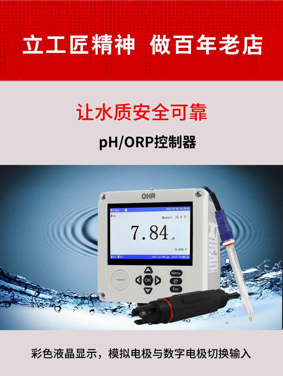 OHR-PH70系列pH/ORP控制器是一款在線化學(xué)分析控制器,主要用于測量水溶液的pH值 和ORP值。用戶可以通過配接相應(yīng)的pH電極或ORP電極來進行測量。該控制器能夠?qū)崟r監(jiān) 測溶液的酸堿度情況,為相關(guān)工業(yè)過程提供準(zhǔn)確的化學(xué)分析數(shù)據(jù)。