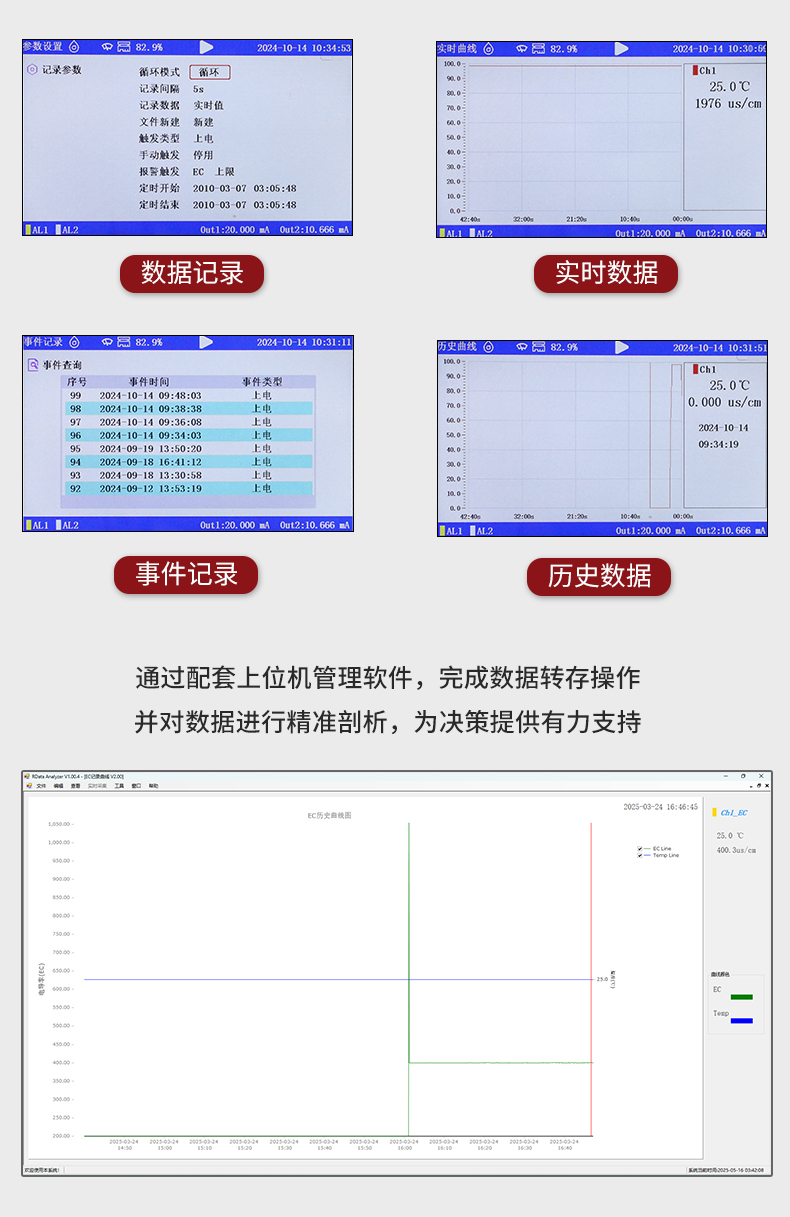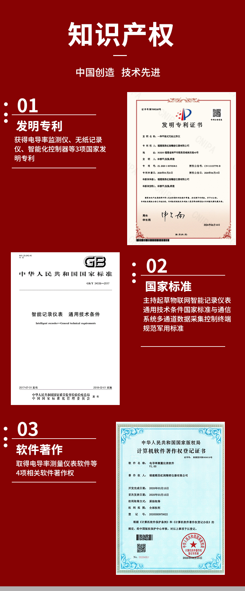 虹潤公司是專業生產水質分析儀的國家專精特新“小巨人”企業。生產的電導率記錄儀,具有模擬電極與數字電極切換輸入、測量精準穩定不跳字,數據記錄與轉存、RS485/以太網通訊,配套上位機管理軟件等特點。產品獲得一種平板無紙記錄儀、智能化控制器等2項國家發明專利;主持起草物聯網智能記錄儀表通用技術條件、現場設備工具(FDT)接口規范.、過程分析技術系統等3項國家標準,以及通信系統多通道數據采集控制終端規范軍用標準,參與國際5G標準制定,取得電導率無紙記錄儀表等4項相關軟件著作權。產品廣泛應用于環保水務、市政供水、水產養殖、農業灌溉、科研實驗等諸多領域。