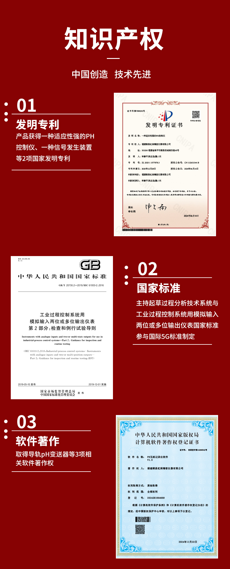 虹潤公司是專業(yè)生產(chǎn)水質(zhì)分析儀的國家專精特新“小巨人”企業(yè)。生產(chǎn)的導(dǎo)軌式PH變送器,具有測量穩(wěn)定不跳字,液晶按鍵操控,變送輸出精準(zhǔn),寬范圍電源供電,RS485或HART通訊等特點(diǎn)。產(chǎn)品獲得一種適應(yīng)性強(qiáng)PH控制儀、智能化控制器、一種信號發(fā)生裝置等3項(xiàng)國家發(fā)明專利;主持起草現(xiàn)場設(shè)備工具(FDT)接口規(guī)范.,工業(yè)過程控制系統(tǒng)用模擬輸入兩位或多位輸出儀表、過程分析技術(shù)系統(tǒng)等3項(xiàng)國家國家標(biāo)準(zhǔn);參與國際5G標(biāo)準(zhǔn)制定,取得導(dǎo)軌PH變送器等3項(xiàng)相關(guān)軟件著作權(quán)。產(chǎn)品廣泛應(yīng)用于水處理、環(huán)境監(jiān)測、食品、制藥、石化、電力、冶金等諸多領(lǐng)域