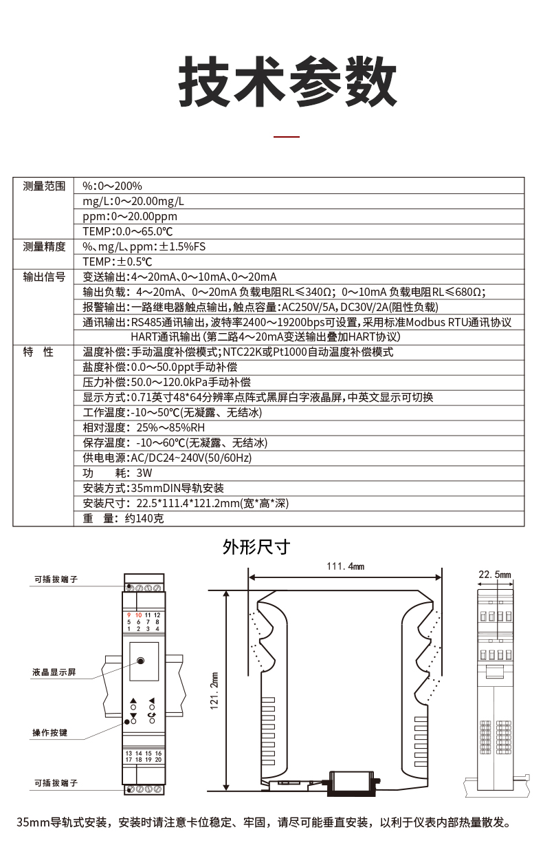 虹潤公司是專業(yè)生產(chǎn)水質(zhì)分析儀的國家專精特新“小巨人”企業(yè)。生產(chǎn)的導(dǎo)軌式溶解氧變送器,具有測(cè)量穩(wěn)定不跳字,液晶按鍵操控,變送輸出精準(zhǔn),寬范圍電源供電,RS485或HART通訊等特點(diǎn)。產(chǎn)品獲得一種高精度在線溶解氧測(cè)量儀表、智能化控制器、一種信號(hào)發(fā)生裝置等3項(xiàng)國家發(fā)明專利;主持起草現(xiàn)場(chǎng)設(shè)備工具(FDT)接口規(guī)范.,工業(yè)過程控制系統(tǒng)用模擬輸入兩位或多位輸出儀表、過程分析技術(shù)系統(tǒng)等3項(xiàng)國家國家標(biāo)準(zhǔn);參與國際5G標(biāo)準(zhǔn)制定,取得導(dǎo)軌溶解氧變送器等3項(xiàng)相關(guān)軟件著作權(quán)。產(chǎn)品廣泛應(yīng)用于實(shí)驗(yàn)室、水處理、環(huán)境監(jiān)測(cè)、制藥、食品、農(nóng)業(yè)、工業(yè)流程控制等諸多領(lǐng)域