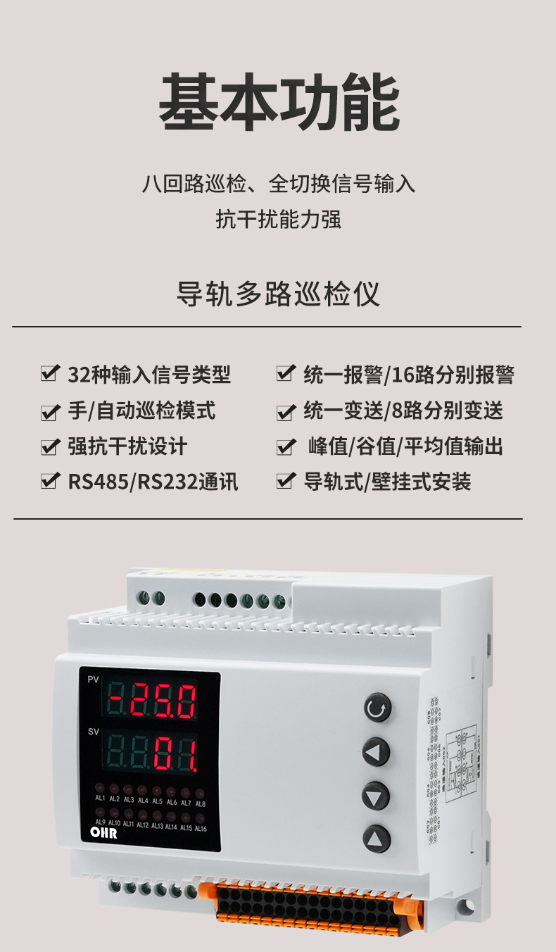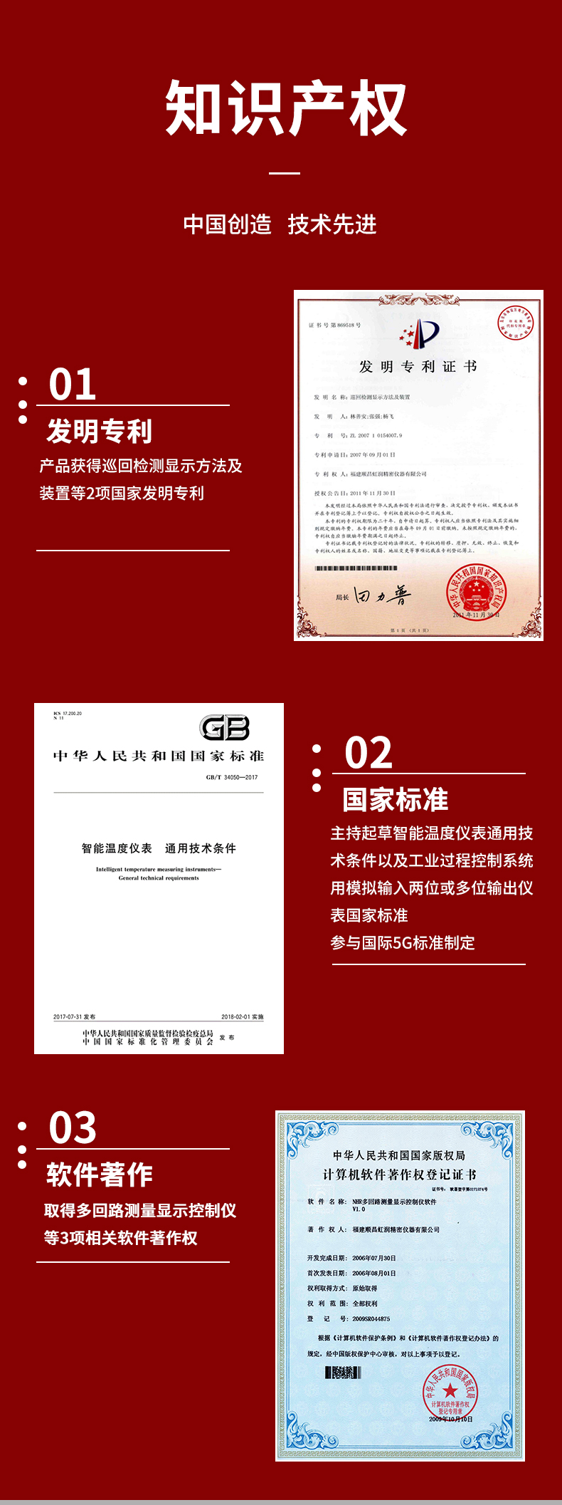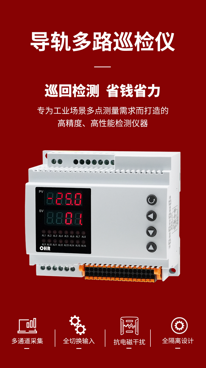 虹潤公司是專業(yè)生產多路溫度巡檢儀的國家專精特新“小巨人”企業(yè)。生產的多路溫度巡檢儀,具有八回路巡檢采集,全切換信號輸入,高抗電磁干擾,全隔離設計,分別報警/分別變送輸出等特點。產品獲得巡回檢測顯示方法及裝置以及工業(yè)模塊的導軌式安裝結構等2項國家發(fā)明專利,主持起草智能溫度儀表通用技術條件以及工業(yè)過程控制系統(tǒng)用模擬輸入兩位或多位輸出儀表等2項國家標準,參與國際5G標準制定,取得巡回檢測控制儀等3項相關軟件著作權。產品廣泛應用于石化、冶金、電力、食品、制藥、水處理、實驗室等諸多領域。